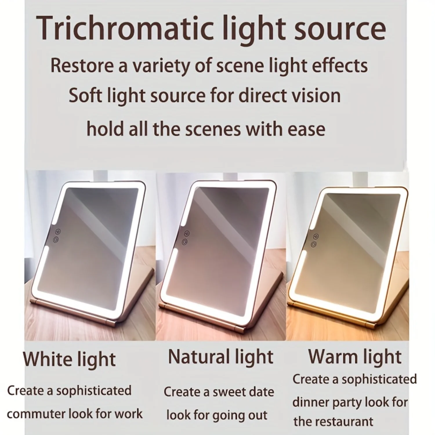 1 шт. светодиодное зеркало для макияжа, портативное большое зеркало для макияжа, складное зеркало для макияжа с лампой, настольное зеркало