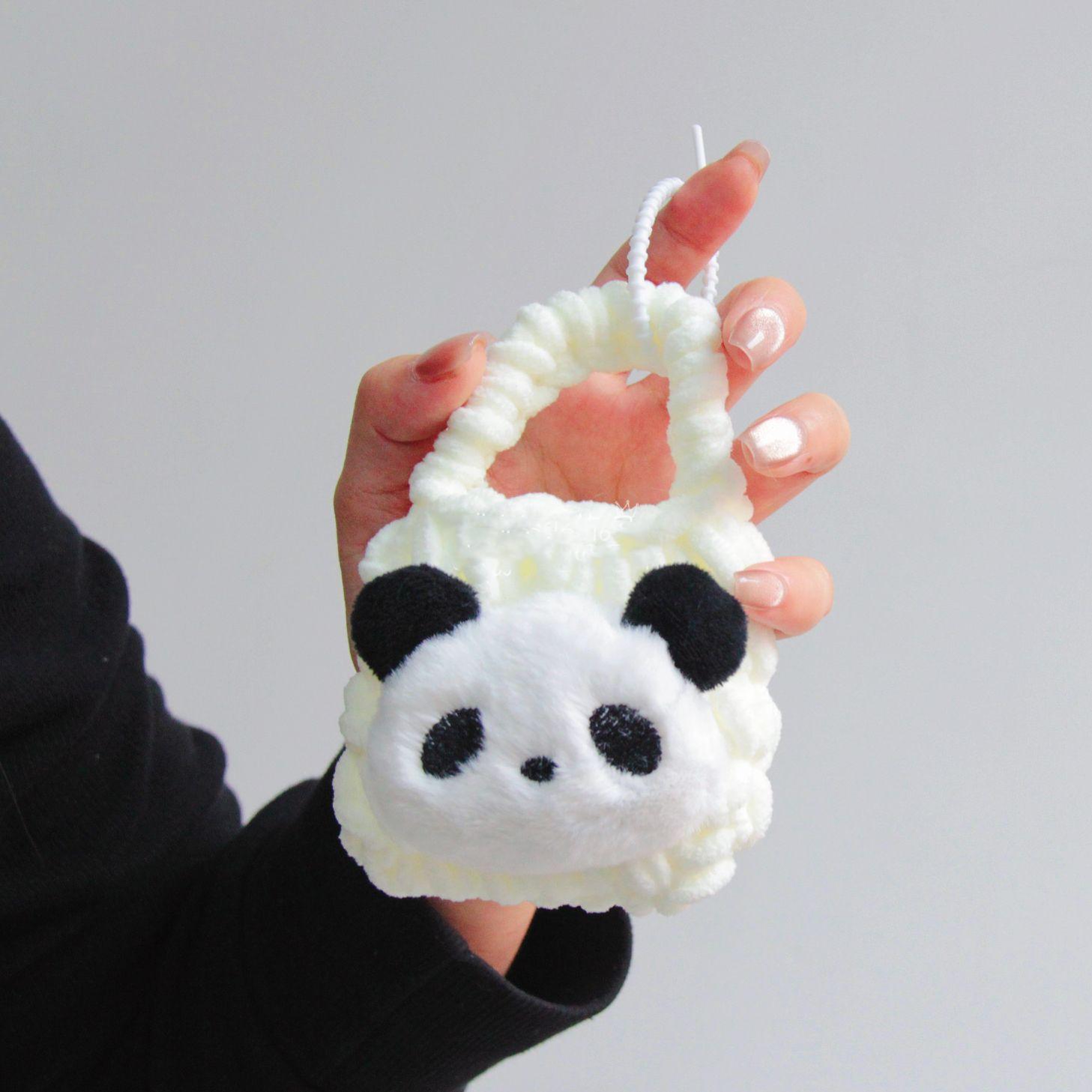 1 шт., сумка для наушников с милой пандой, креативная плюшевая сумка для хранения кабеля с изображением панды в виде животных, сумка для хранения кабеля Kawaii, портативная мини-сумка-брелок для монет белый