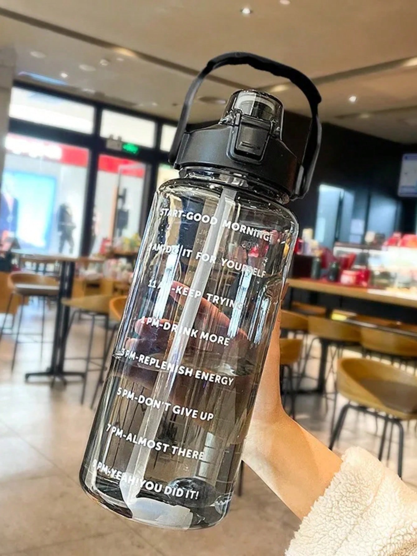 1 шт. черная 2 литра соломенная пластиковая бутылка для воды большая портативная дорожная бутылка спортивная фитнес-кружка высокая ценность большая толстая кружка взрослая Univ 2.0L чёрный