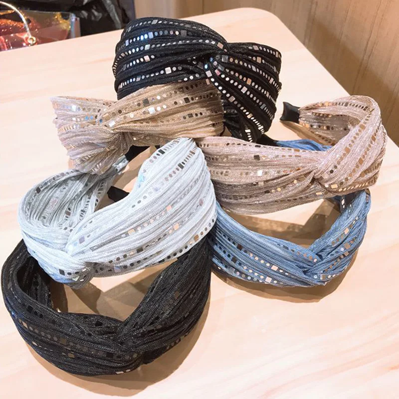 1 шт., широкая повязка на голову с черными кружевами, украшенная кристаллами, 2020