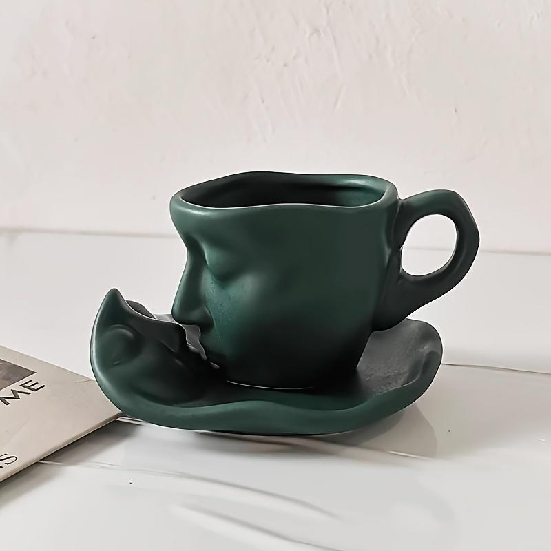 1 шт. 100 мл керамическая кружка с блюдцем металлическая трогательная кружка с изображением лица креативная керамическая чашка для эспрессо поцелуй рождественский подарок на день рождения свадебный подарок 100ml зелёный