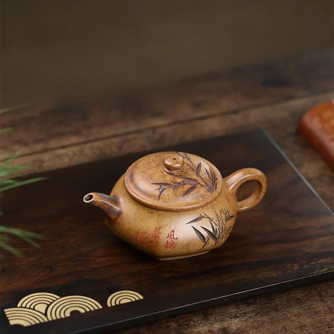 1 шт. 190 мл премиальный ретро Исинский чайник из сырой руды, секция, фильтрация, резьба, бамбук, фиолетовая глина, чайный набор для Кунг-фу