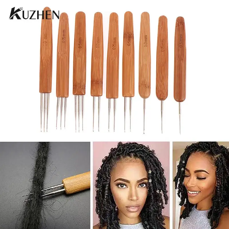 1 шт. 1-2 крючка 1-3 крючка стильная игла для дредов для плетения 0,5 мм 0,75 мм 1 мм натуральный бамбук страшный замок инструмент для плетения волос