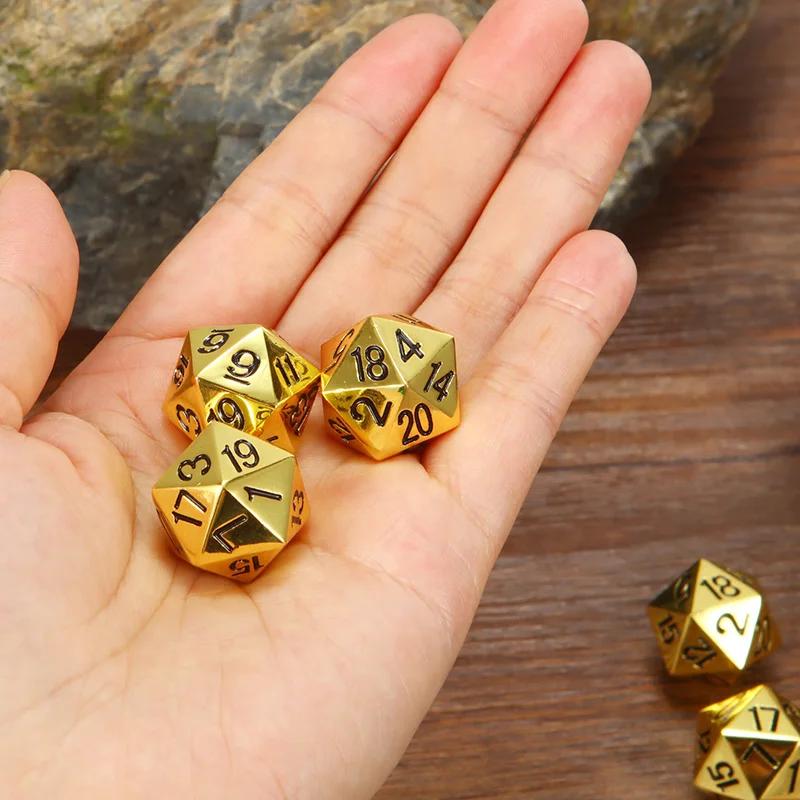 1 шт., 20-сторонние решающие игральные кости, золотые/бронзовые металлические забавные игральные кости, стандартные аксессуары для настольной игры