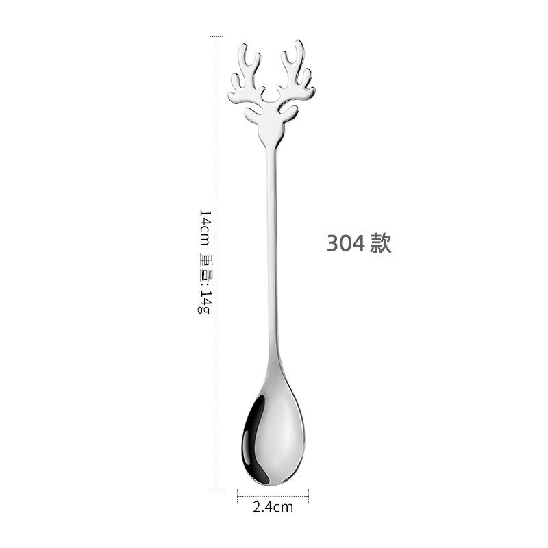 1 шт. 304 Нержавеющая сталь мультяшная рождественская ложка в виде лося, симпатичная голова оленя, мини-ложки для мороженого, кофейная десертная ложка для размешивания, столовая посуда