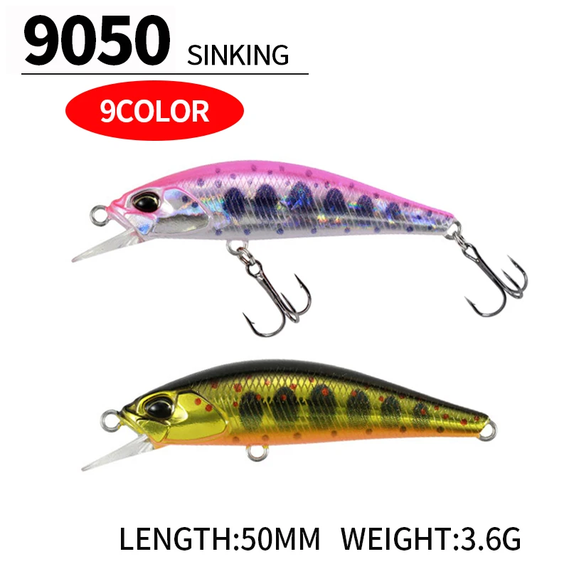 1 Pcs 50mm 3.6g Mini Minnow Lure Sinking Fishing Gorgeous Painted Wobbler Fishing Tackle Pesca Hard Bait Minnow 9050