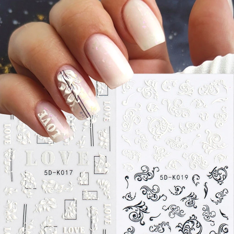 1 шт. 5D наклейки для ногтей с белыми цветами, кружевной дизайн, рельефные наклейки, акриловые гравированные слайдеры, свадебные украшения дл...