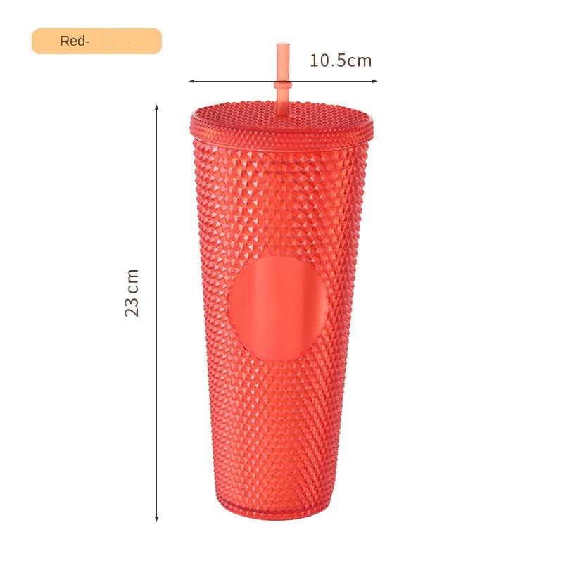 1 шт. 710 мл соломенная чашка с крышкой, отделка с двойными стенками, пластиковые кружки для кофе с заклепками, стаканы для дуриана, холодная блестящая чашка, изготовленная на заказ 710ml красный
