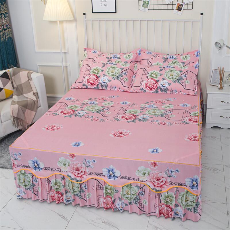 1 юбка-кровать + 2 наволочки Комплект постельного белья шлифовальное мягкое покрывало King Queen Size двухслойная юбка-кровать 180*200