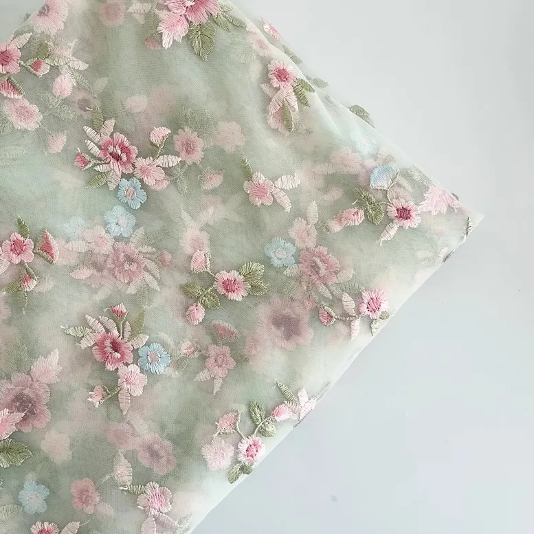 1 ярд красочная маленькая цветочная вышивка тела Cheongsam свадебное платье ткань для шитья светло-зеленая мягкая сетчатая ткань