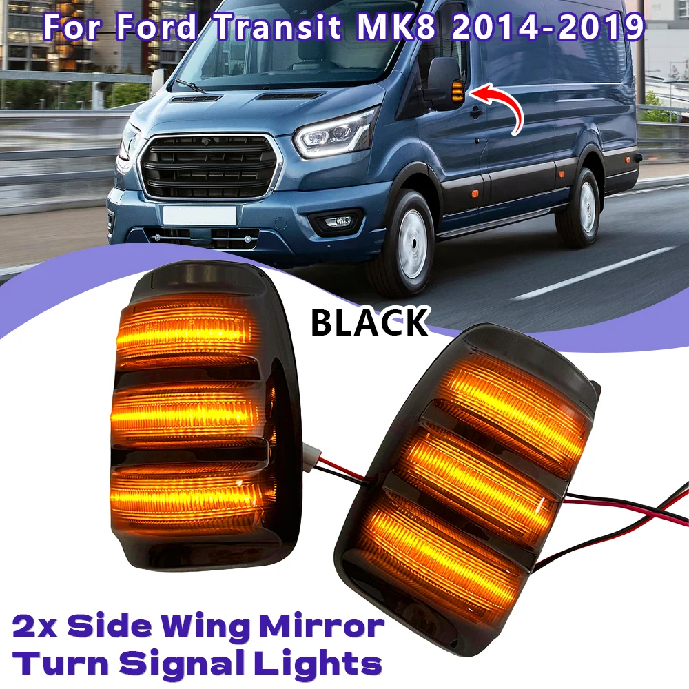 2pcs LED Dynamic Amber Side Mirror Turn Signal Lights Mirror Indicator For Ford Transit MK8 2015+