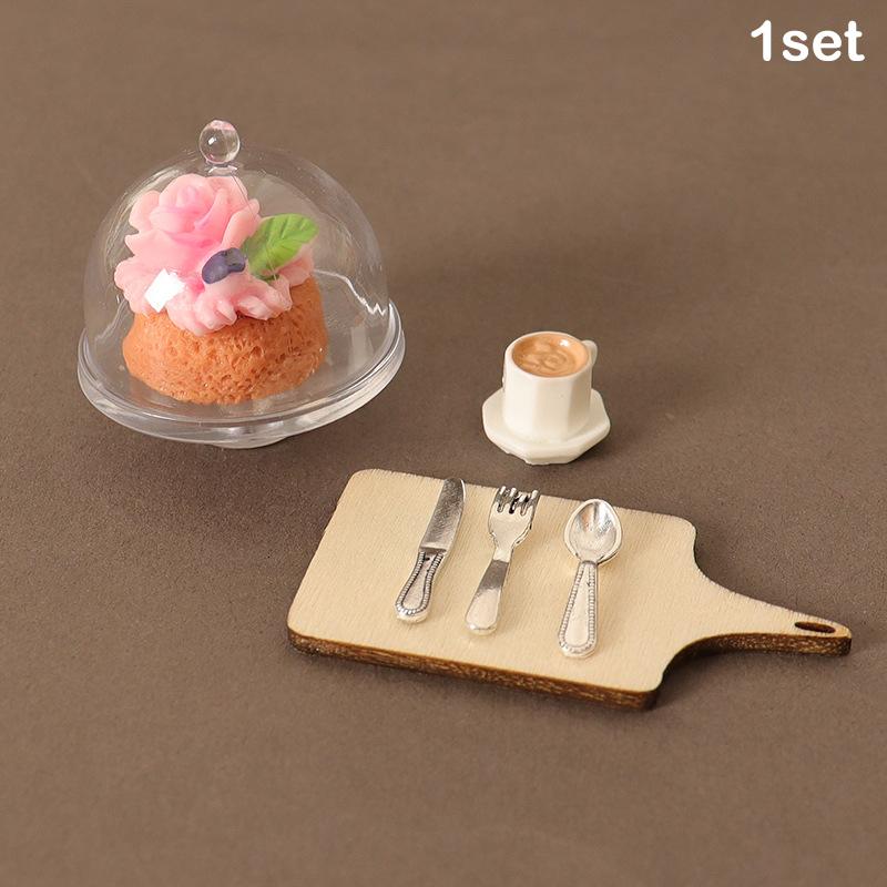 1/12 кукольный домик имитация кофейный торт десертный набор кукольный домик мини кухня поднос столовые приборы аксессуары кукольный домик украшения