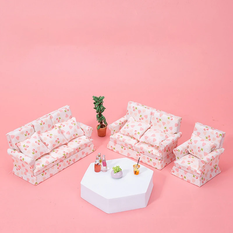 1: 12 кукольный домик мини мебель вишня любовь диван из трех частей Модель сцена