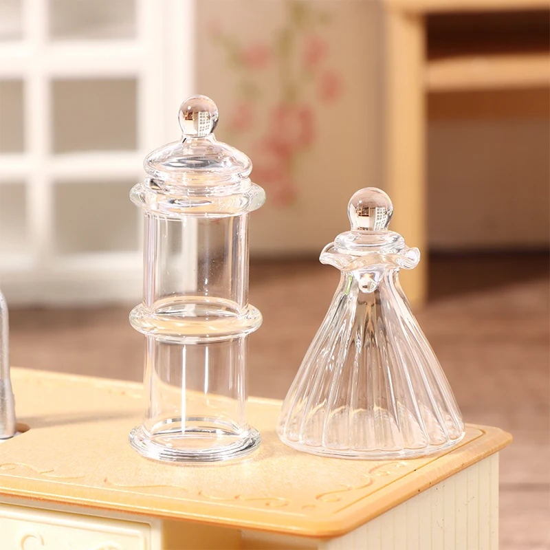 1:12 миниатюрная прозрачная стеклянная банка для кукольного домика, бутылка для хранения рождественских конфет с крышкой, модель кукольного домика, декоративная игрушка