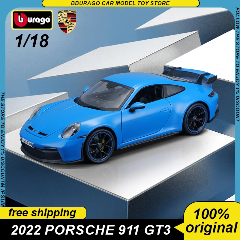1:18 2022 Bburago Porsche 911 GT3 Racing Sports Car Alloy Luxury Vehicle Diecast Model Edition Car Toys Collection Children Gift