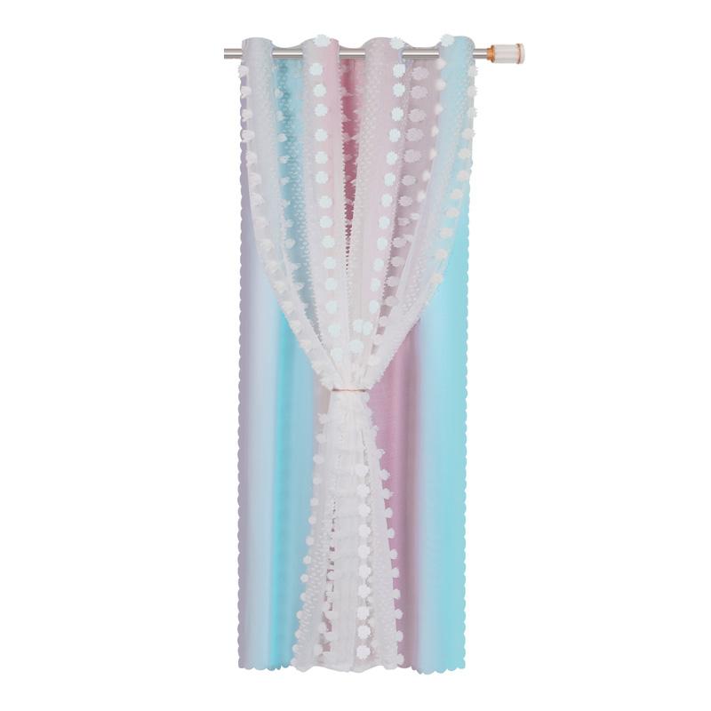 1/2панельная затемняющая штора двухслойная помпоновая люверсная верхняя затемняющая драпировка вуаль тюль оконные жалюзи для спальни гостиной 132x160cm
