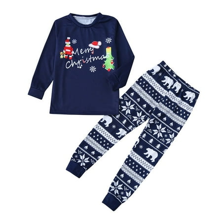 Christmas Pajamas for Family Parent-Child Outfit Winter Fall 2PCS Cartoon Letter Top+Deer Pants Clothes Pajama Sets