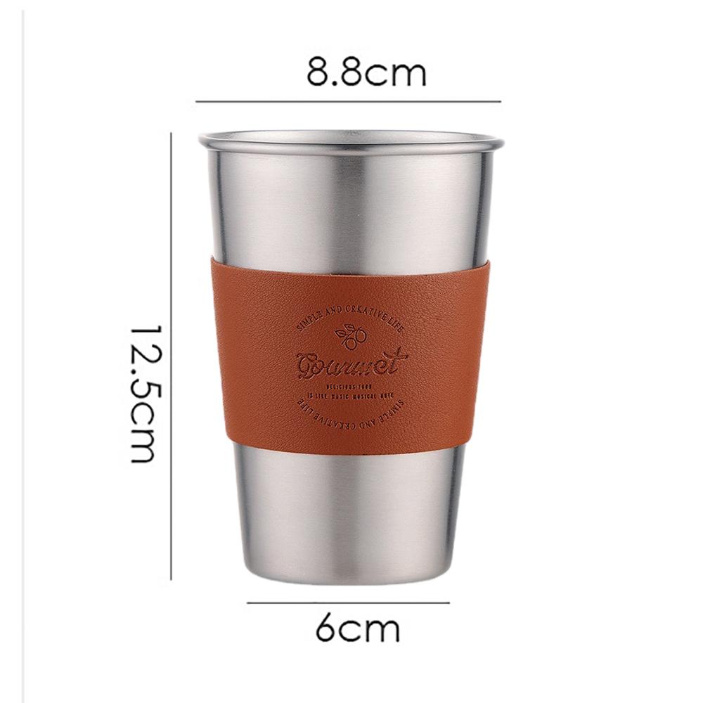 1/2 шт. серебряная чашка для кофе с ушками, высококачественная нержавеющая сталь 304, искусственная кожа, винтажный набор кофейных чашек, уличная офисная домашняя кружка Gourmet-500ML
