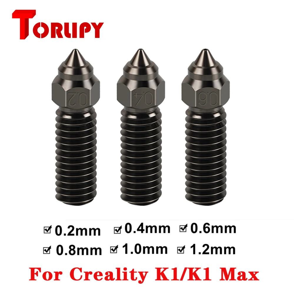 1/2 шт. сопло из закаленной стали 0,2/0,4/0,6/0,8/1,0/1,2 мм для 3D-принтера K1 FDM, детали для 3D-принтера, антипригарная нить для сопла Creality K1 Max