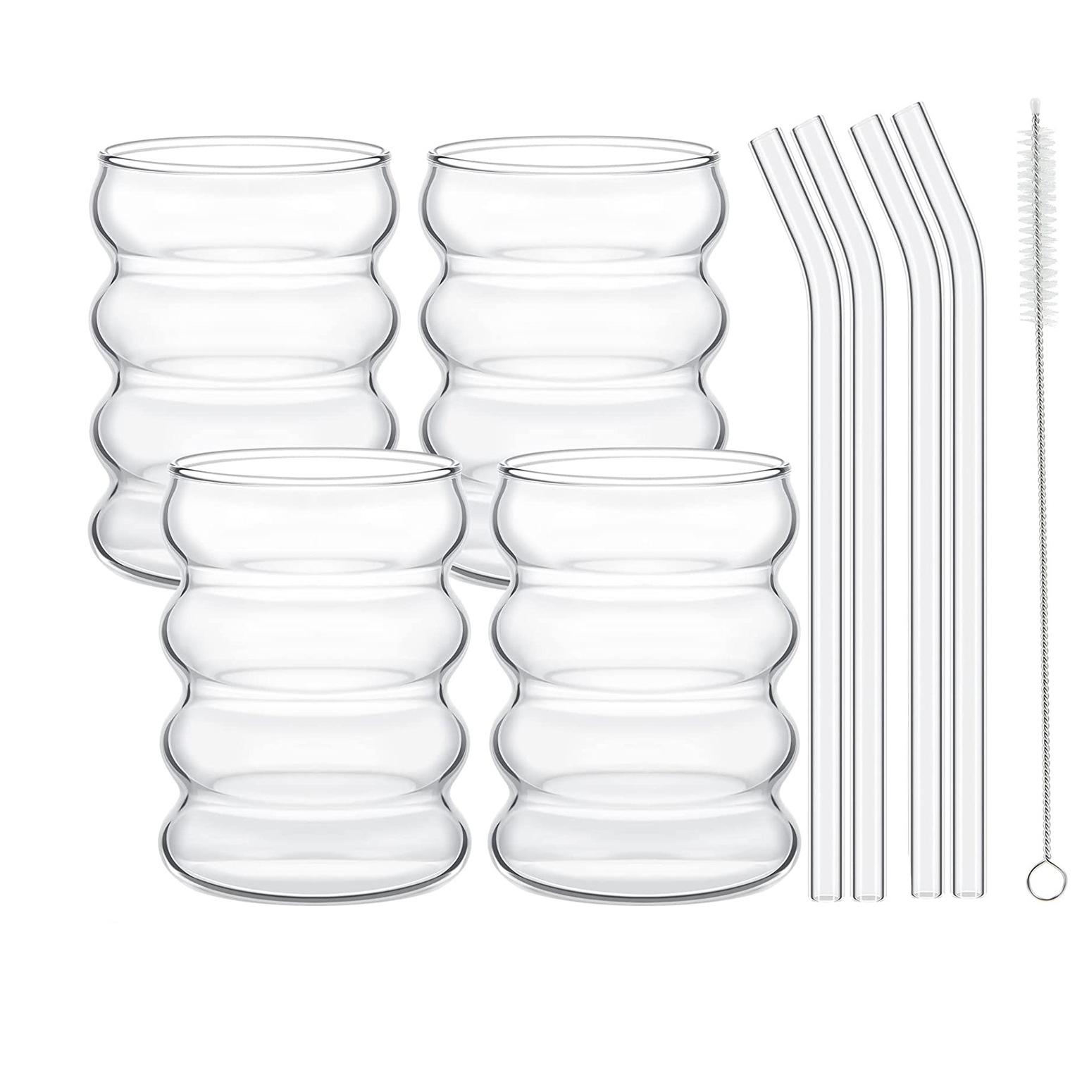 1/2/4 шт. стаканы для питья со стеклянной трубочкой в форме волны стеклянные чашки пивные бокалы стакан для кофе со льдом кружка 350 мл кофейная посуда