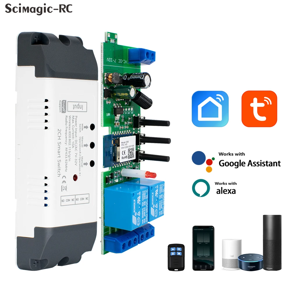 1/2/4 Channel TUYA WiFi Smart Light Switch Garage Door Controller 12V 24V 110V 220V RF433 Receiver Work with Alexa Google Home