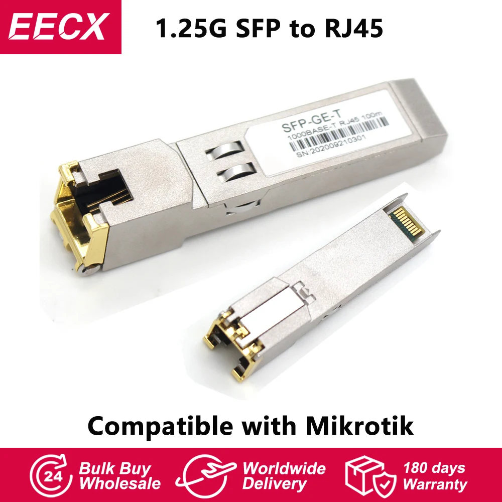 1,25G SFP к RJ45 модулю 1000 Мбит/с SFP Медь 1G SFP трансивер совместимый с Mikrotik Cisco Ubiquiti Универсальный TP-Link D-Link