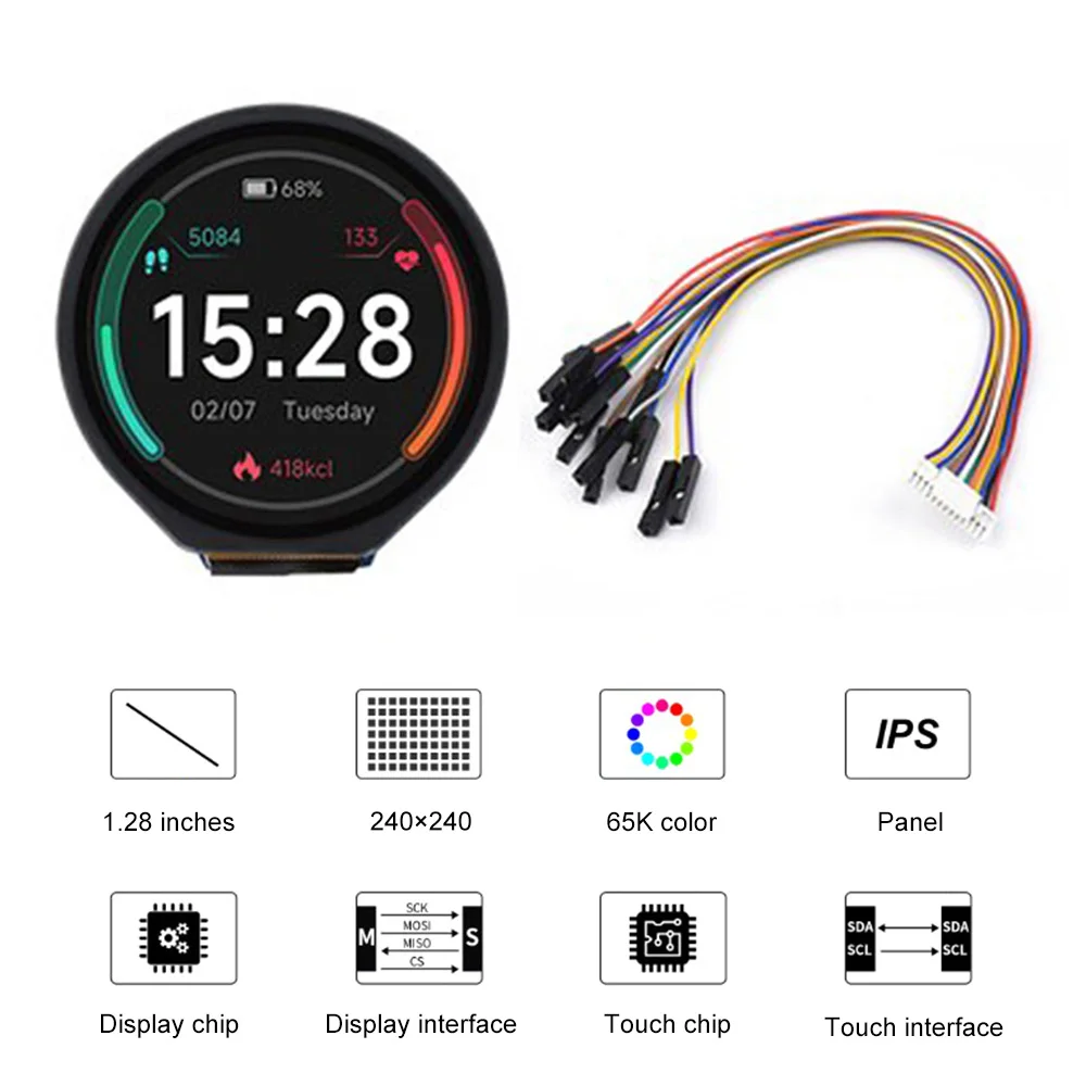 1,28 дюймовый сенсорный ЖК-дисплей IPS модуль 240x24 0 разрешение 65K RGB SPI интерфейс для Arduino Raspberry Pi STM32