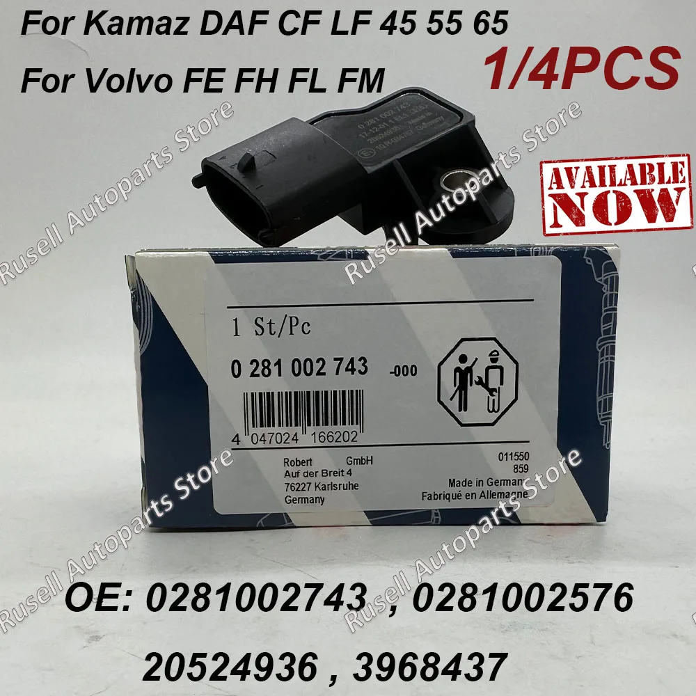 1/4 шт. для B-osch 0281002743 0281002576 MAP Датчик давления впускного воздушного коллектора 20524936 для V-olvo C-ummins I-veco F-ord