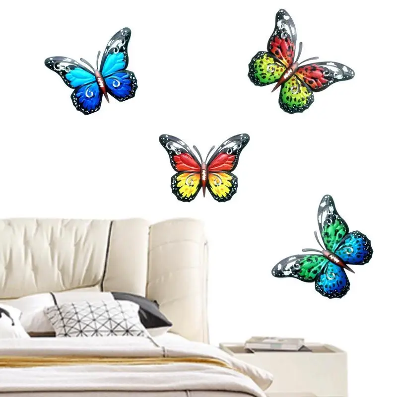 1/4 шт. 3D металлическая бабочка стенные скульптуры в виде рыб Art, подвесной декор для внутреннего дворика, сада, двора, набор для улицы и помеще...