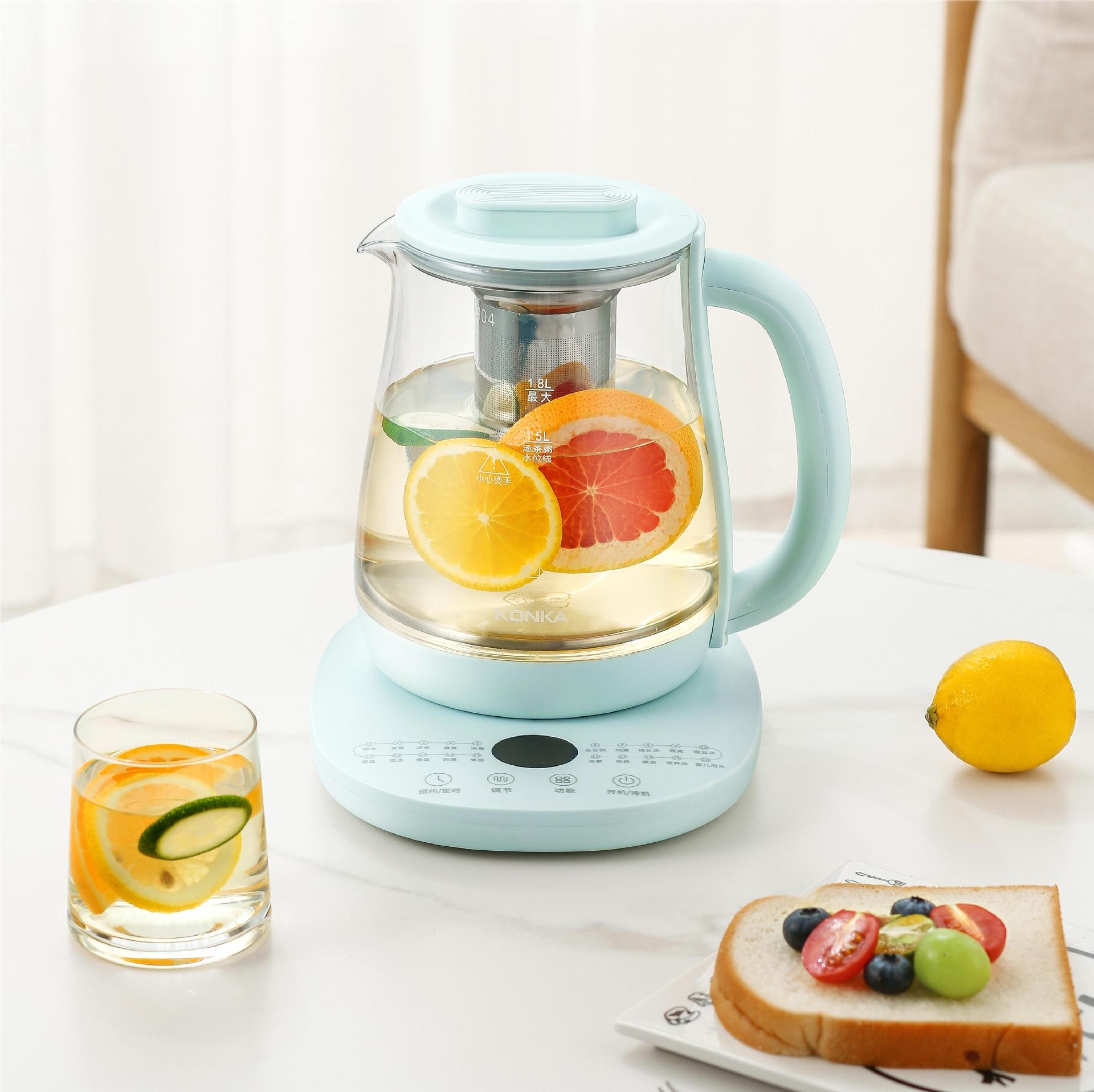 1,8 л кастрюля для хранения полезных веществ Бытовая стеклянная кастрюля для хранения полезных веществ Многофункциональный чайник для заваривания чая Электрический чайник 220 В EU Plug синий
