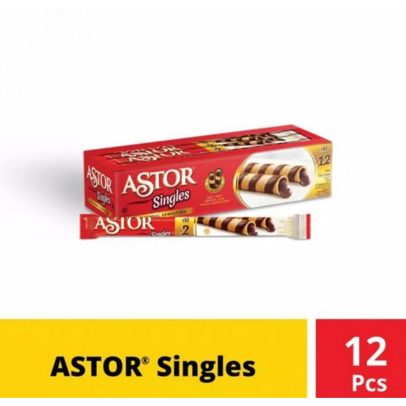 Astor singgle. Kemasan 1 box isi 12 pcs. Manis, renyah,enak buat di makan.