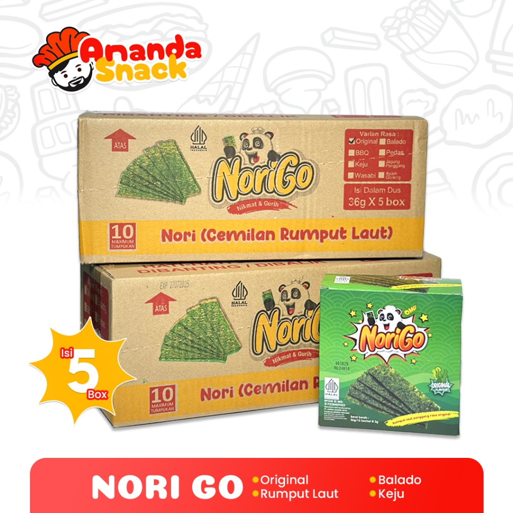 1 DUS NoriGo Snack Rumput Laut - Makanan Ringan Rumput Laut Isi 5 Box