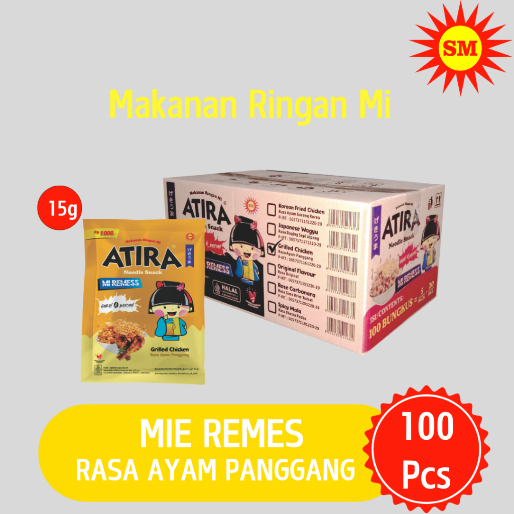 1 DUS SNACK ATIRA RASA GRILLED CHICKEN isi 100pcs. adalah camilan kering yang lezat dan praktis, ideal untuk menemani waktu santai Anda.