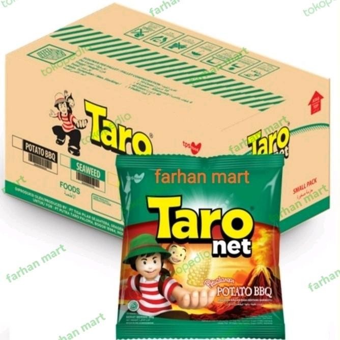 1 DUS TARO NET RASA POTATO BBQ | SEAWEED NETTO 6 RENCENG X 10 PCS X 9 GRMakanan ringan menjadi camilan yang mungkin banyak disukai oleh masyarakat. Salah satu, camilan yang hingga saat ini banyak dikonsumsi adalah Snack Taro. Yap, snack Taro terus melakukan inovasi dengan menghadirkan beragam rasa yang sudah pasti disukai oleh anak – anak. Bahkan, snack yang tergolong jadul karena sudah sejak dulu, namun untuk kualitas rasanya selalu berhasil bikin nagih. Selain itu, makanan ringan dari Snack Taro juga cenderung memiliki rasa gurih yang sangat nikmat untuk di konsumsi ketika sedagn berkumpul atau besantai.Camilan dengan Rasa Renyah dan GurihSnack yang terkenal dengan desain yang khas, membuat Taro selalu menjadi camilan yang banyak disukai. Apalagi, rasa yang terbilang renyah dan gurih ini, menjadikan Taro sebagai salah satu camilan yang selalu bikin nagih. Bakan, terbuat dari perpaduan bahan terigu, minyak nabati, tapioka dan bumbu varian rasa lainnya, Snack Taro sukses mencuri perhatian masyarakat. Untuk varian rasanya sendiri cukup lengkap, Anda bisa mencicipi rasa mulai dari Teriyaki, Italian Pizza, Cowboy Steak, Jungle Chicken, Net Seaweed dan Potato BarbequeTaro Net Potato BBQ Snack adalah salah satu varian snack Taro Net yang telah dikenal luas dari generasi ke generasi. Makanan ringan dengan rasa kentang barbeque yang gurih ini memiliki tekstur renyah dan lezat. Ideal dinikmati bersama teman dan keluarga.HAPPY SHOPPING :)