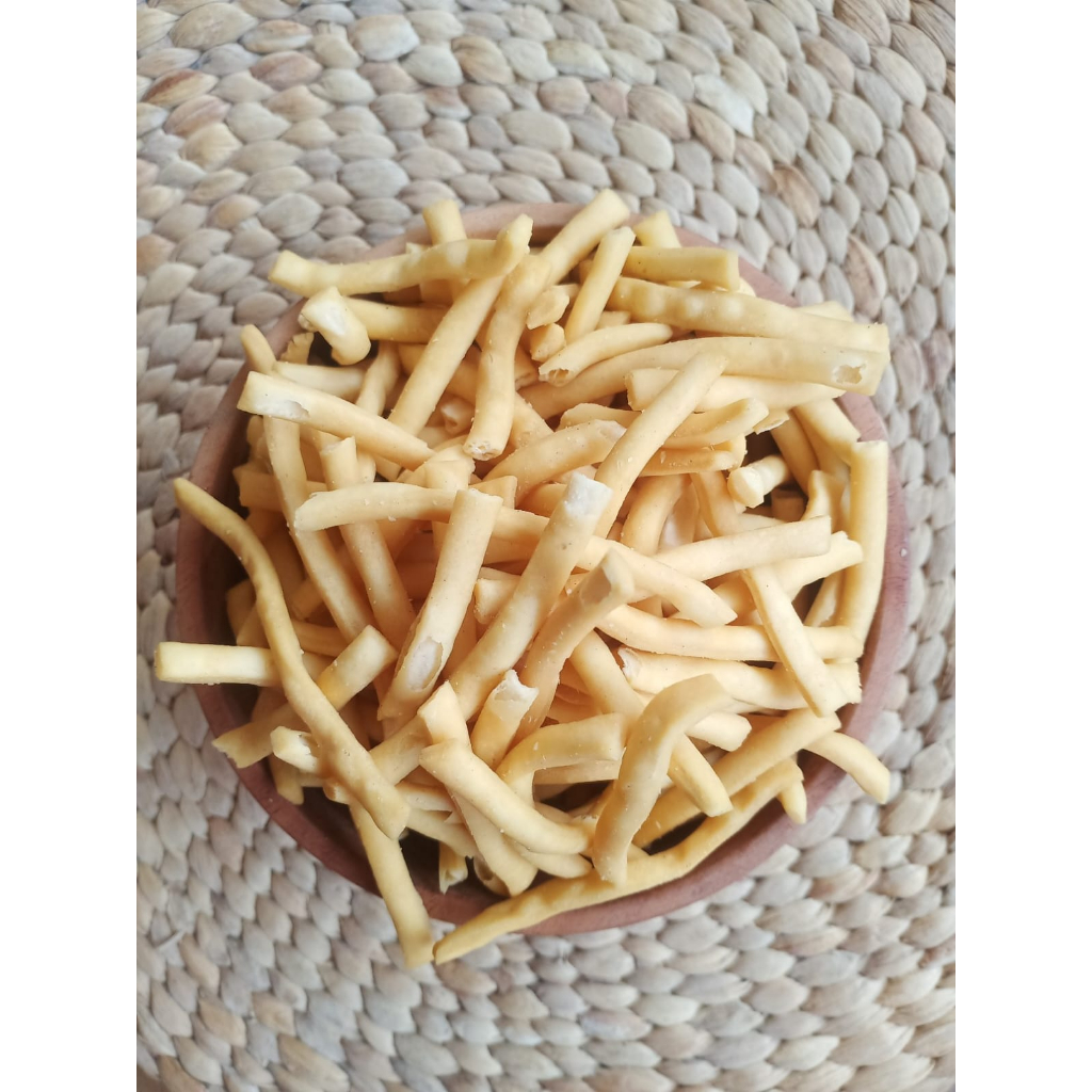 Stik bawang terbuat dari terigu dengan tekstur yang sangat renyah. Stik bawang di toko kami di bumbui dengan menggunakan bumbu rempah yang khas seperti bawang merah, bawang putih, minyak sayur, garam, gula, dll. Perpaduan rasa yang khas seperti gurih dan asin sangat cocok dinikmati semuanya. Bastik bisa dikonsumsi sebagai cemilan, lauk dan untuk suguhan.