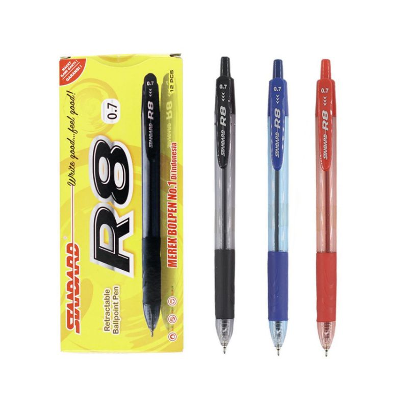 1 LSN / 12 PCS Pena Retractable Ballpen Pulpen STANDARD R8