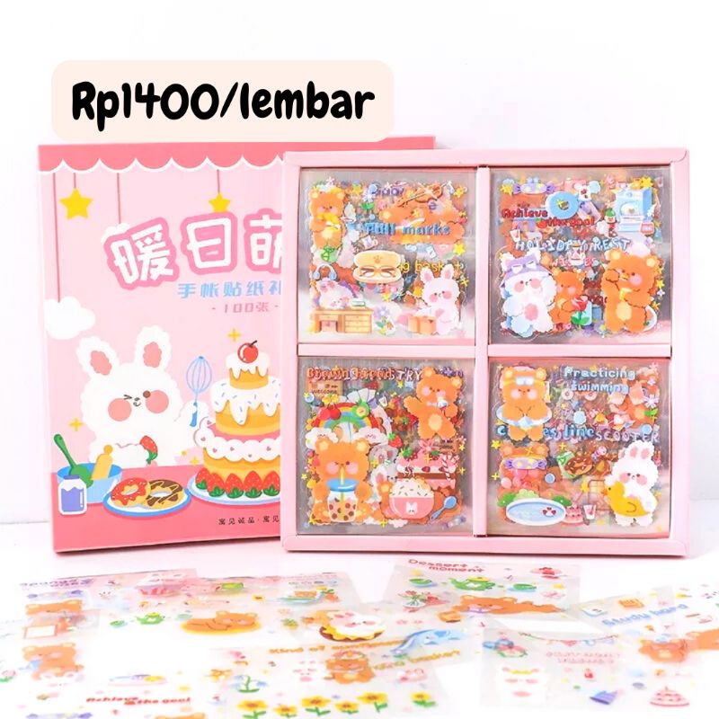 1 Lembar Sticker Deco Bear and Rabbit Theme Transparan PVC