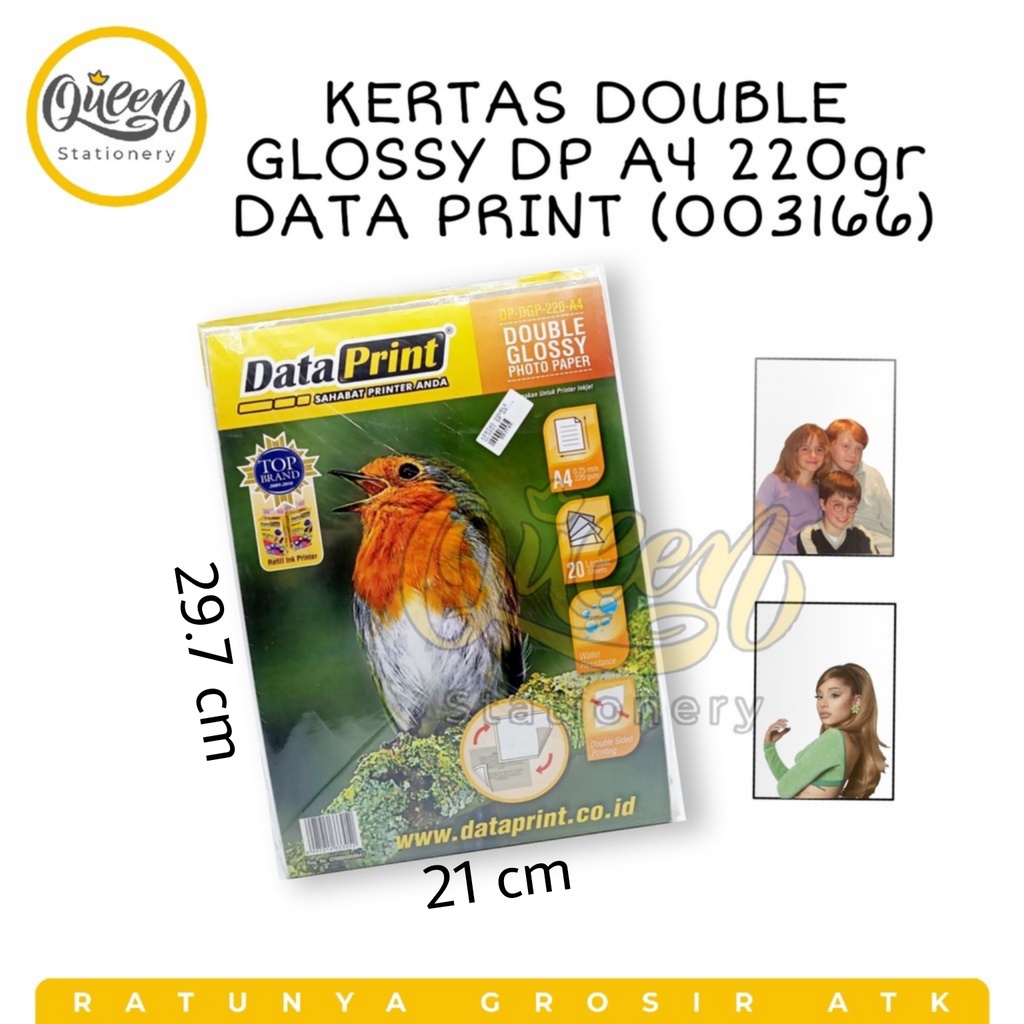 - DataPrint Double Glossy Photo Paper 220 gsm A4 adalah kertas photo glossy beresolusi tinggi dan dapat dicetak di kedua sisinya.
