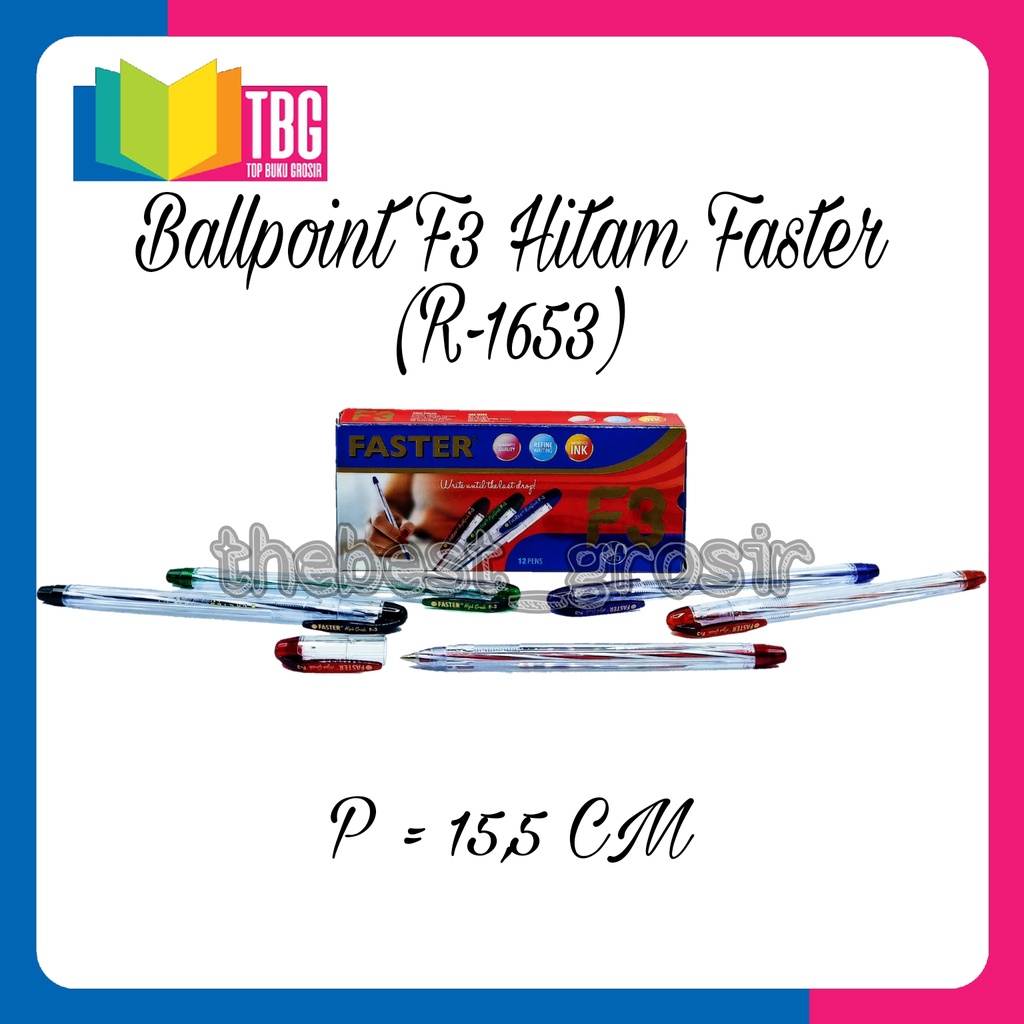 1 PCS BALLPOINT F3 HITAM FASTER (R-1653) / BOLPEN FASTER / PULPEN