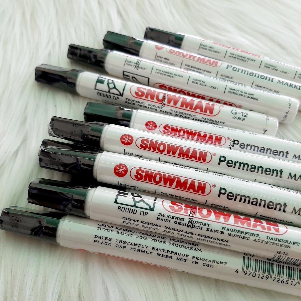 Spidol merk snowman tersedia yang permanen dan yang tidak permanen atau Untuk papan tulis