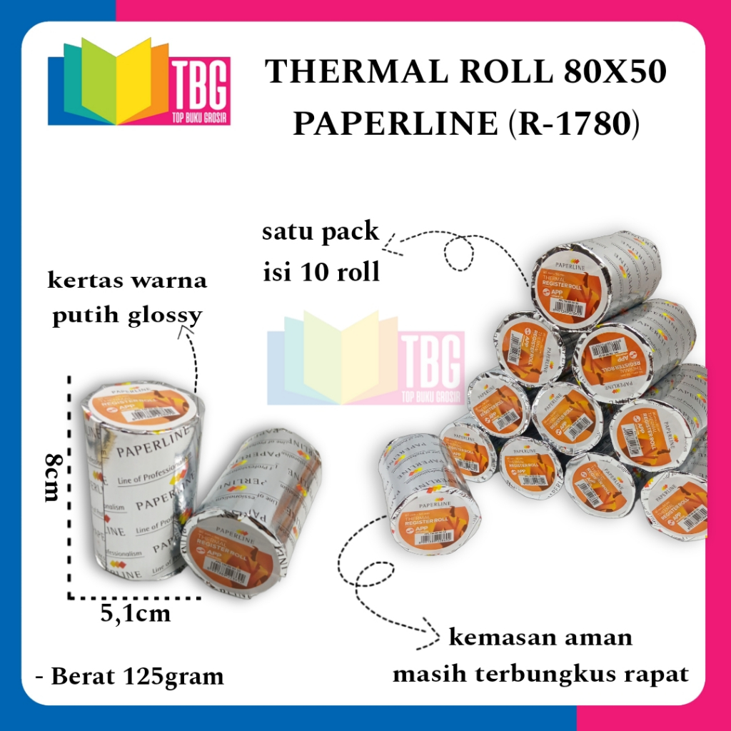 1 PCS THERMAL ROLL 80X50 PAPERLINE/ KERTAS STRUK KASIR/ KERTAS ROLL KASIR/ THERMAL KASIR (R-1780)