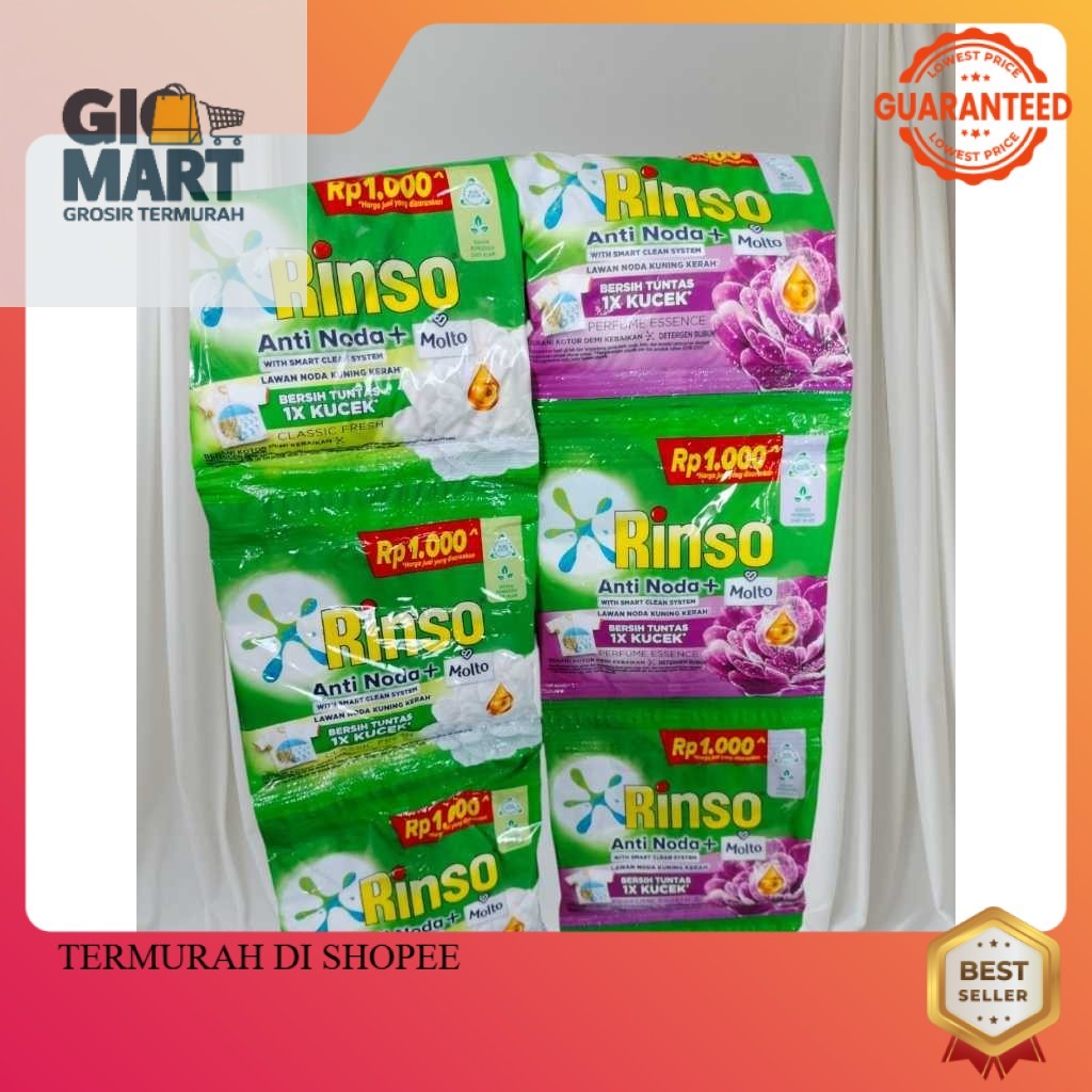 (1 RENCENG ISI 6 PCS) Rinso 1000an Sachet Deterjen Anti Noda Bubuk Sachet 1000an 40 gr Isi 6 Pcs