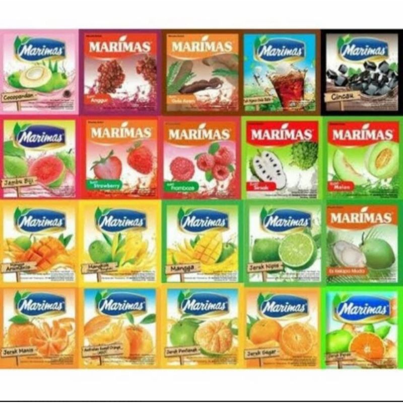 Marimas Minuman Serbuk Dengan Aneka Rasa Yang Dapat Anda Nikmati. Harga Tertera Di Atas Harga 1 Renceng Isi 10sachet