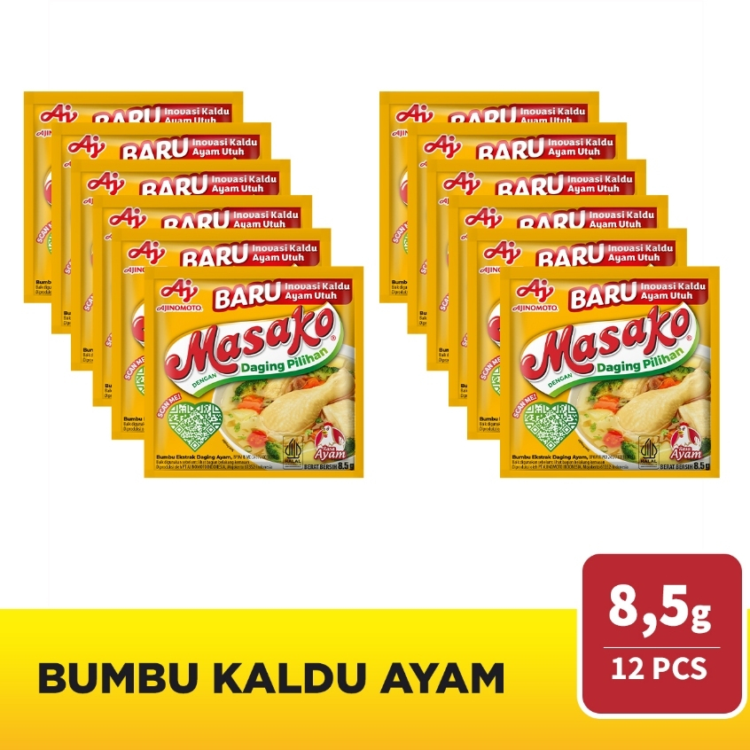 1 RENTENG MASAKO Bumbu Kaldu AYAM Penyedap Rasa Isi 12 Sachet 8.5g