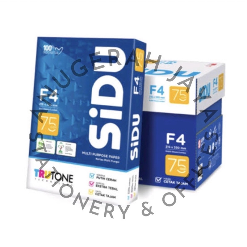 [1 RIM 500 LBR] KERTAS F4 75 GRAM SIDU BERKUALITAS , KEFTAS HVS FOLIO SIDU , KERTAS FOLIO F4 SINAR DUNIA , SIDU , SINAR DUNIA