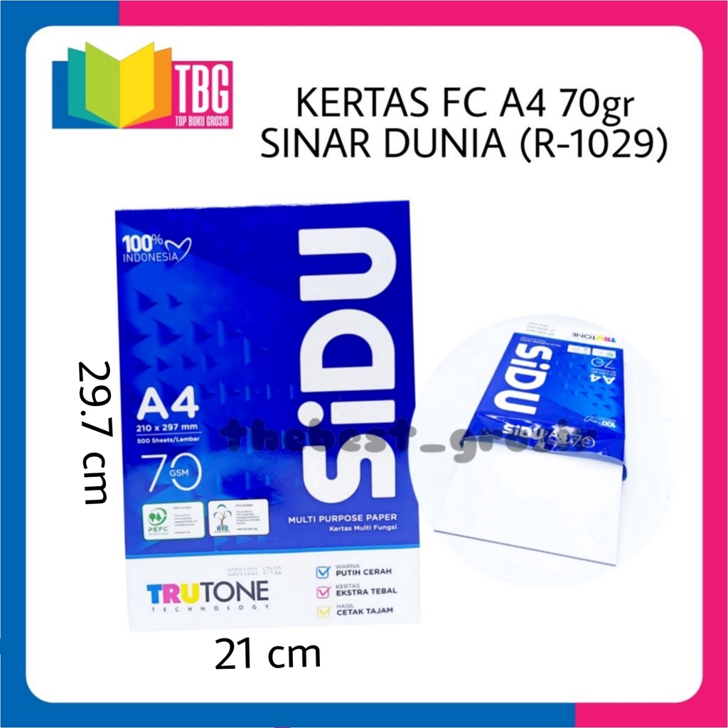 1 RIM (500 LEMBAR ) KERTAS FC A4 70GR SINAR DUNIA /KERTAS FOTO COPY A4 SIDU /KERTAS PUTIH (R-1029)