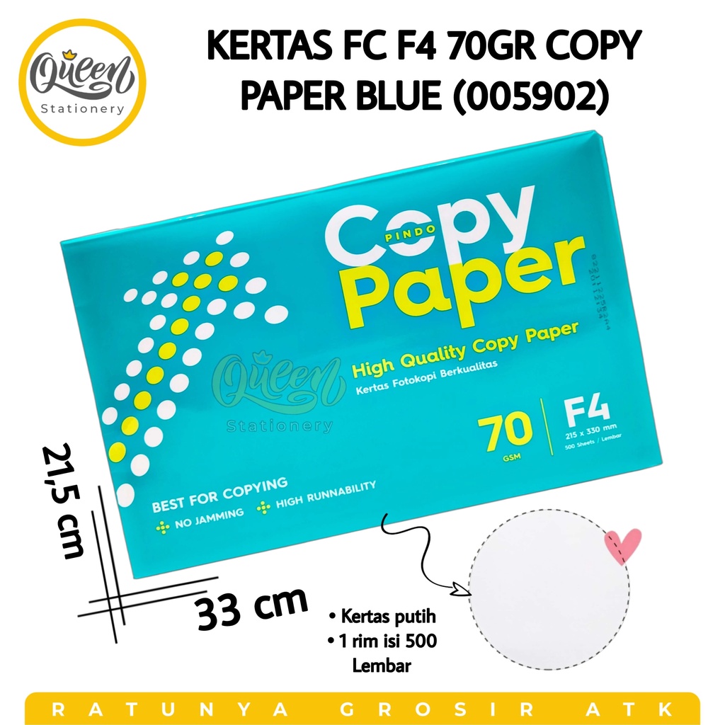 1 RIM KERTAS FC F4 70GR COPY PAPER BLUE KERTAS PRINT HVS FOTOCOPY 70 GRAM (005902)