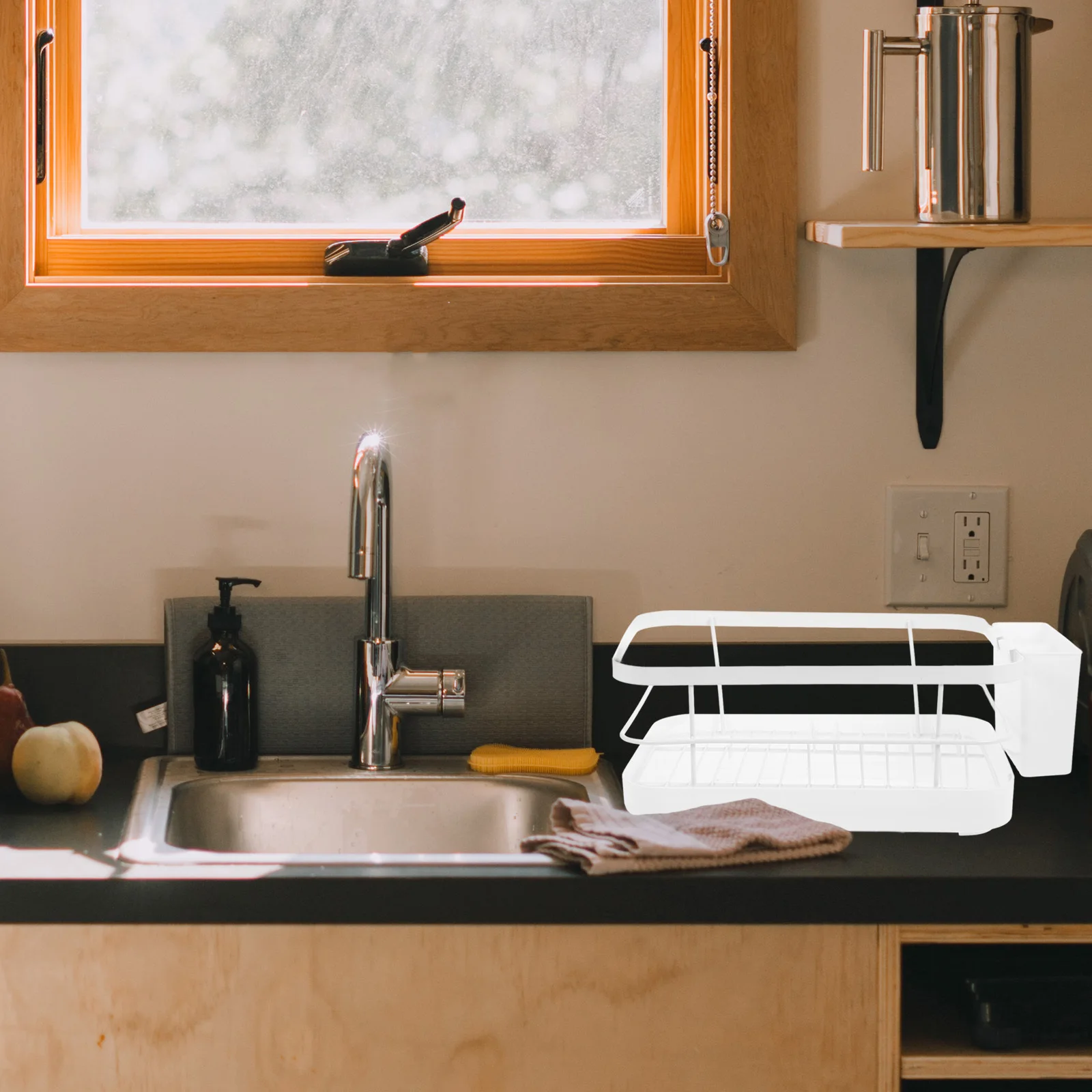 1 Set Kitchen Dish Organizer Drying Rack Countertop Plate Bowl Holder Silverware Holder Compact Multipurpose Drying Stand