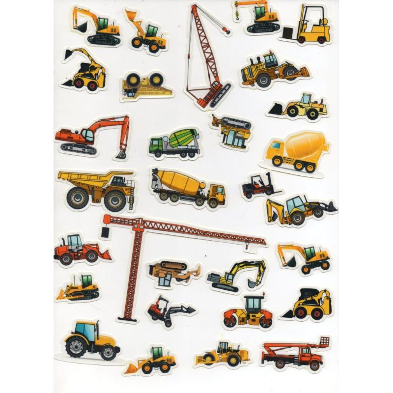 Setiap stiker menampilkan gambar alat berat yang berbeda-beda, seperti truk pengangkut, bulldozer, ekskavator, grader, dan banyak lagi. Dengan stiker-stiker ini, anak-anak dapat belajar tentang berbagai jenis alat berat yang digunakan untuk mengangkut material, menggali tanah, meratakan permukaan, dan banyak lagi.