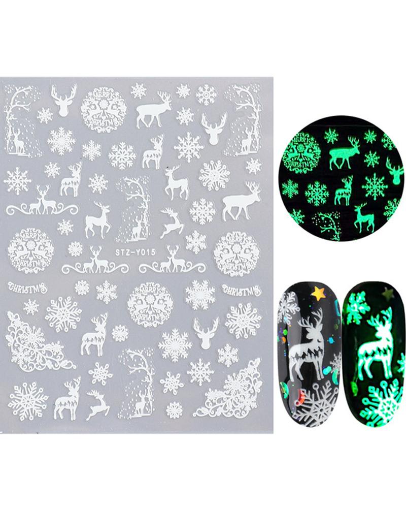 1 Sheet Night Glow Luminous Christmas Pattern Nail Sticker, Style8